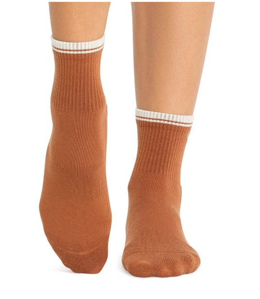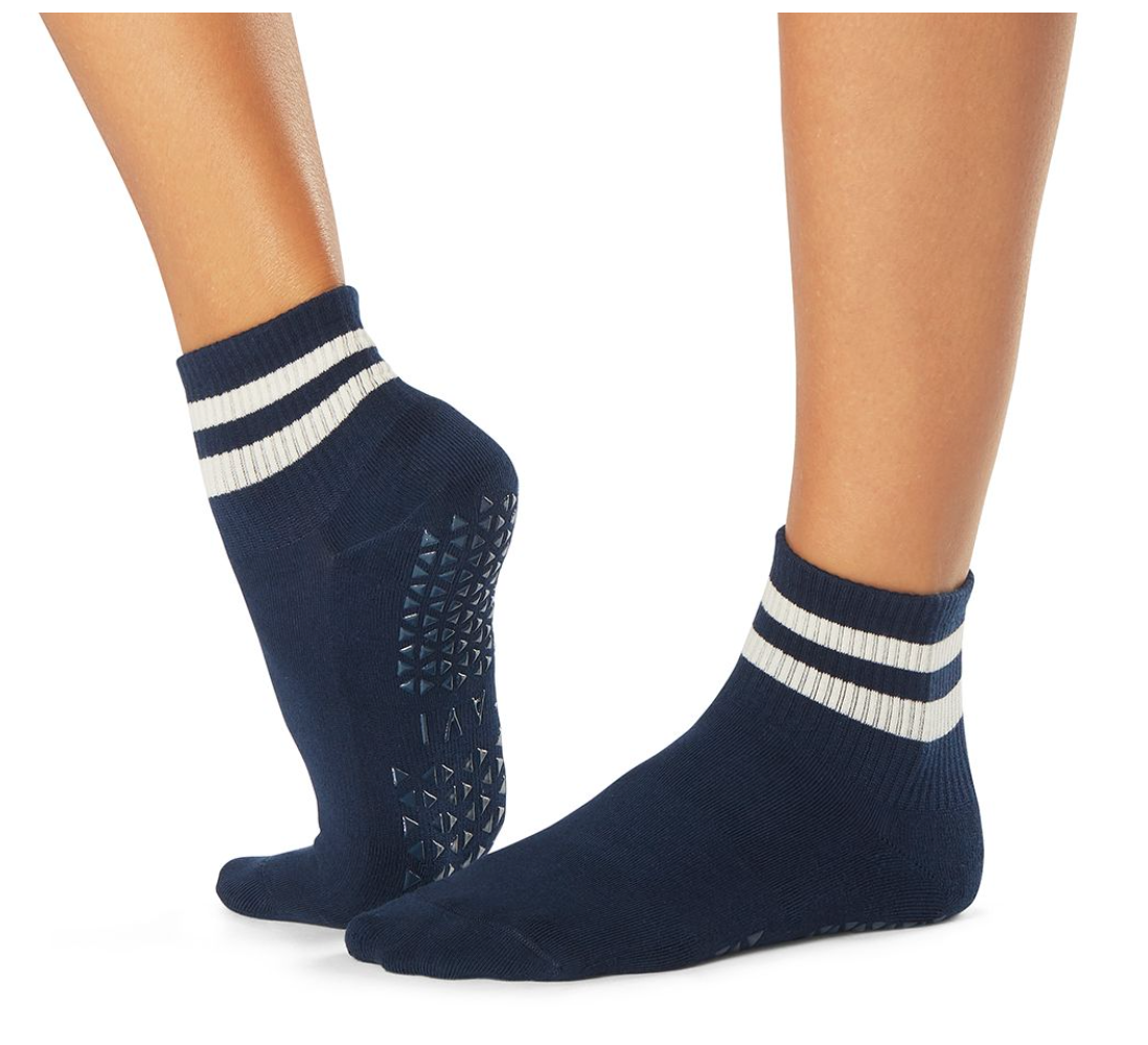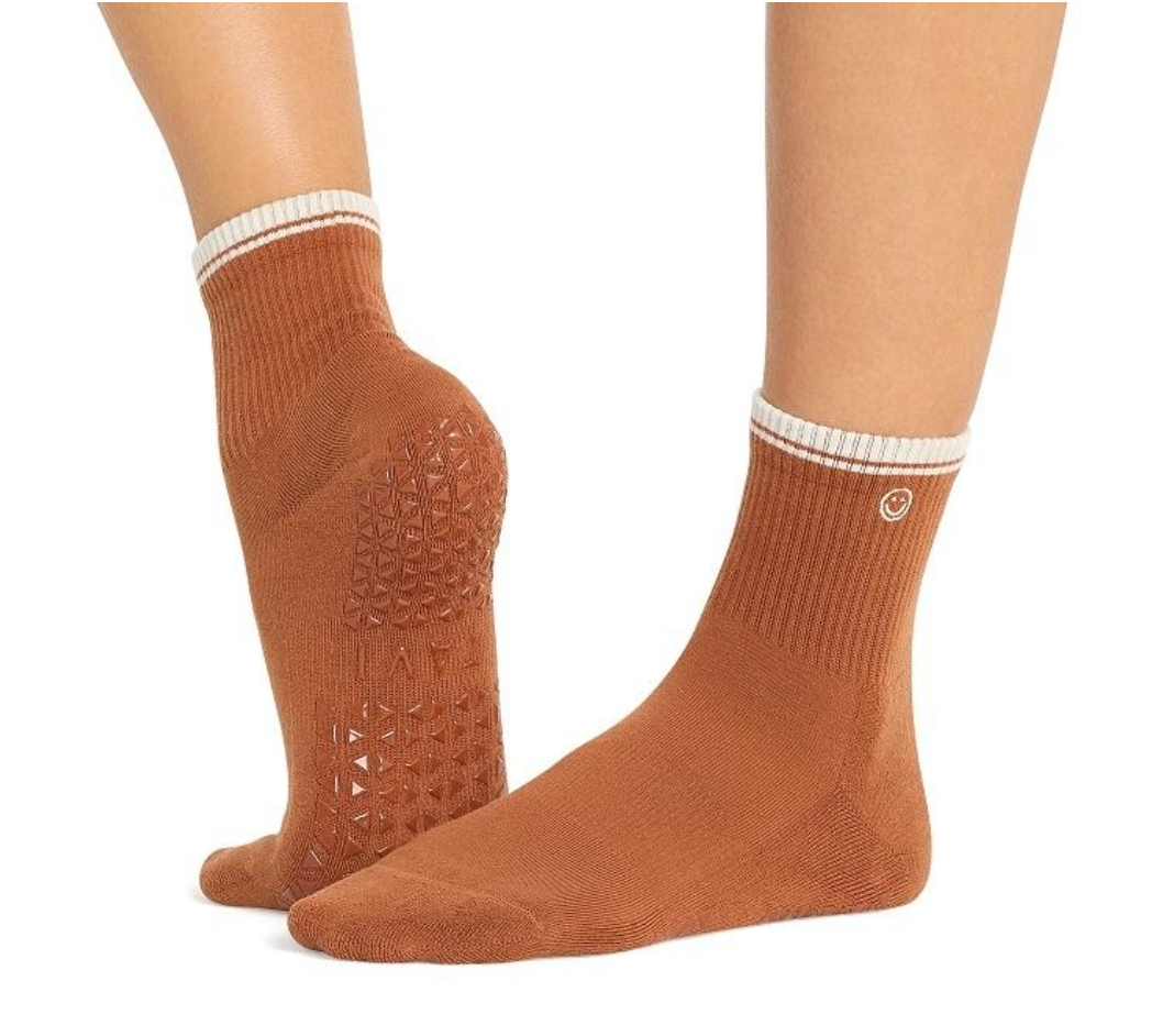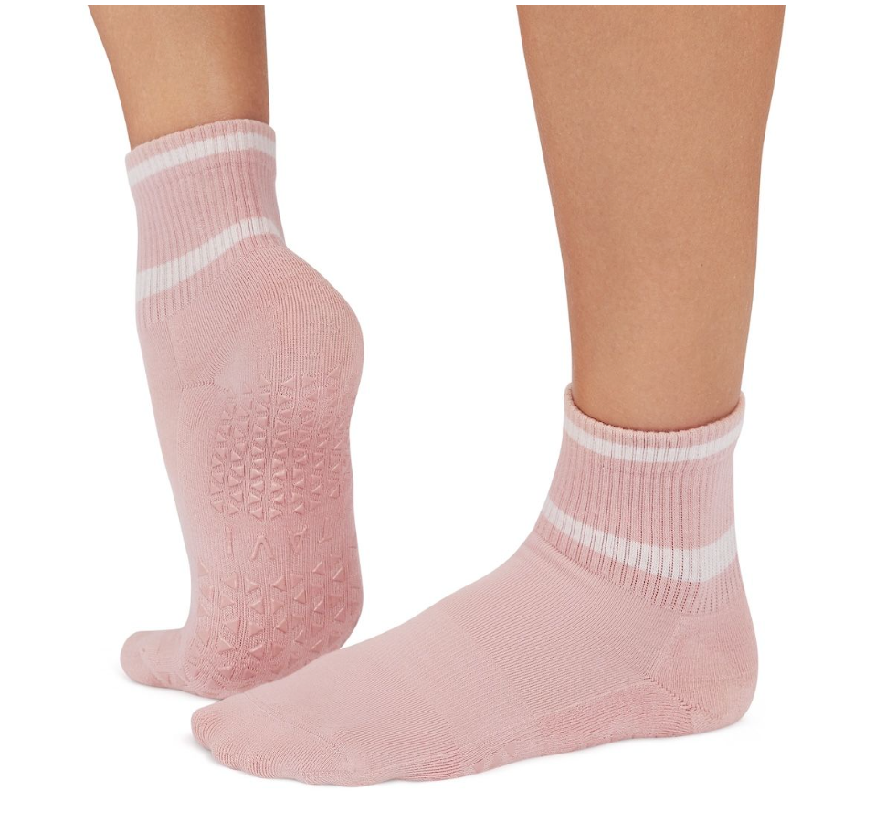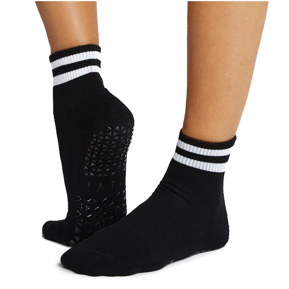 These socks offer a hygnienic alternative to bare feet for your yoga practice. The comfortable cotton and polyester fabric has a grippy sole so you won't slide off your mat. Full sock design