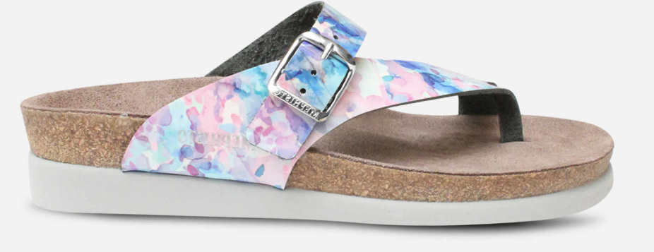 This light, lining-free MEPHISTO ladies' sandal has a unique cork footbed that ensures soft, stress-free walking. The glove-soft leather uppers and light wedge guarantee optimum wearing comfort.